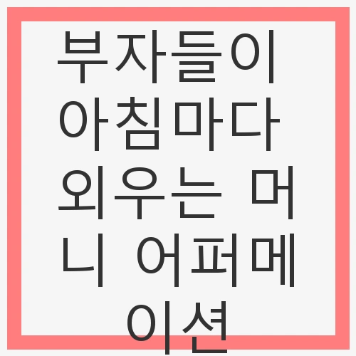 머니 어퍼메이션이란, 자신에게 긍정적인 메시지를 반복하여 주입하는 기법입니다. 이것은 단순한 말이 아니라, 우리의 잠재의식을 변화시키고 행동을 이끌어내는 힘이 있습니다. 머니 어퍼메이션을 통해 부자들은 재정적 자유를 손에 넣기 위한 마음가짐을 다집니다. 이 글에서는 부자들이 아침마다 외우는 여러 가지 머니 어퍼메이션과 그 효과를 알아보겠습니다.